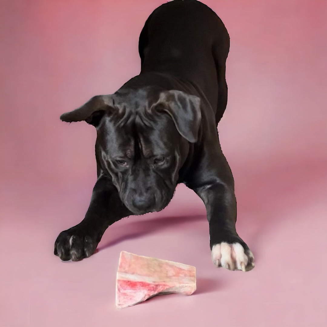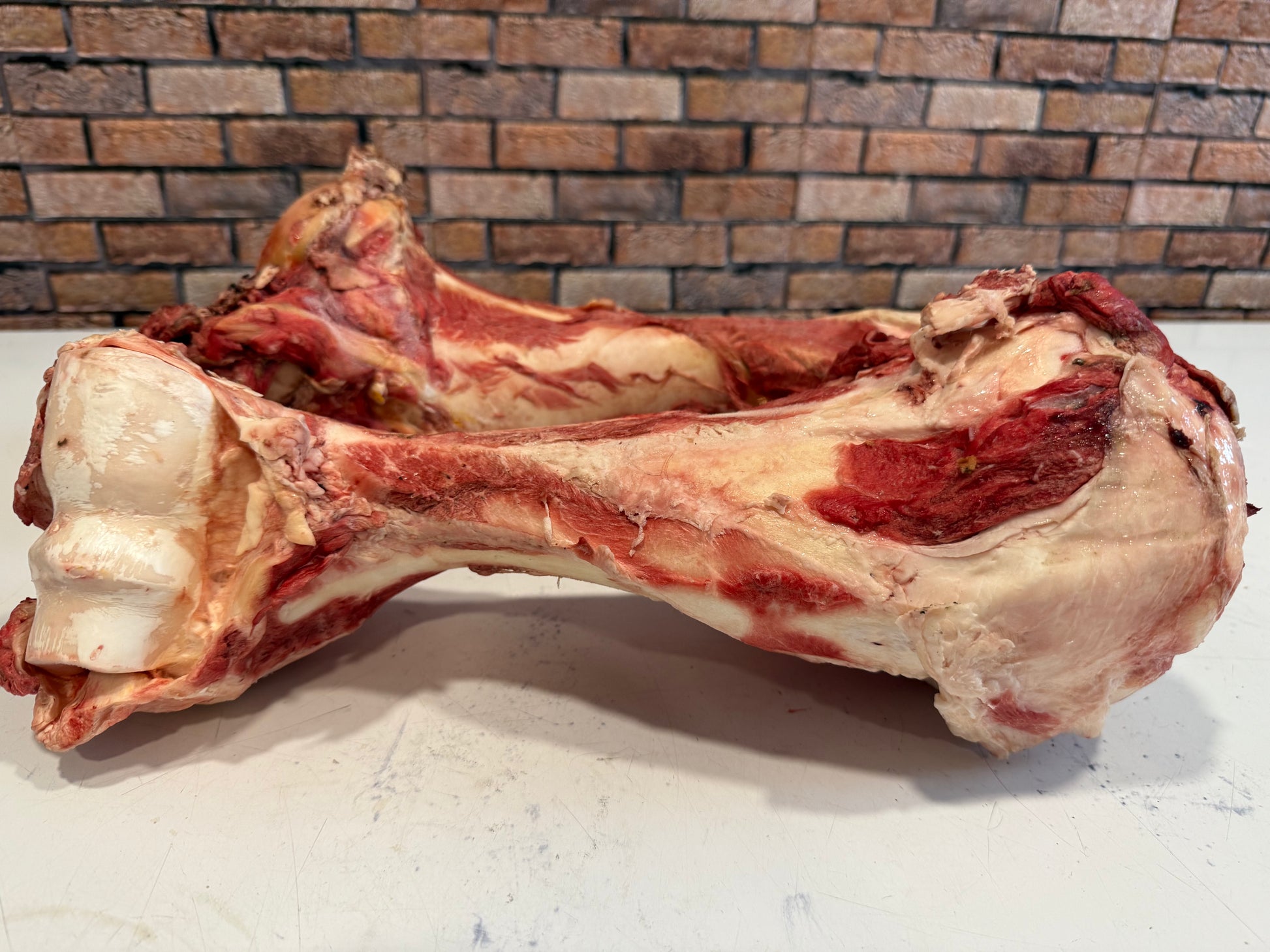 Sourced from hormone- and antibiotic-free Ontario cattle, our 5" beef femur bones are packed with nutrient-rich marrow and essential minerals like calcium and phosphorus. Weighing 1.5–2 lbs, they provide a satisfying recreational chew that supports dental hygiene and jaw strength. Best suited for adult dogs with strong teeth. Always supervise during chewing and discard once the bone is cleaned to prevent splintering. Store frozen until use.